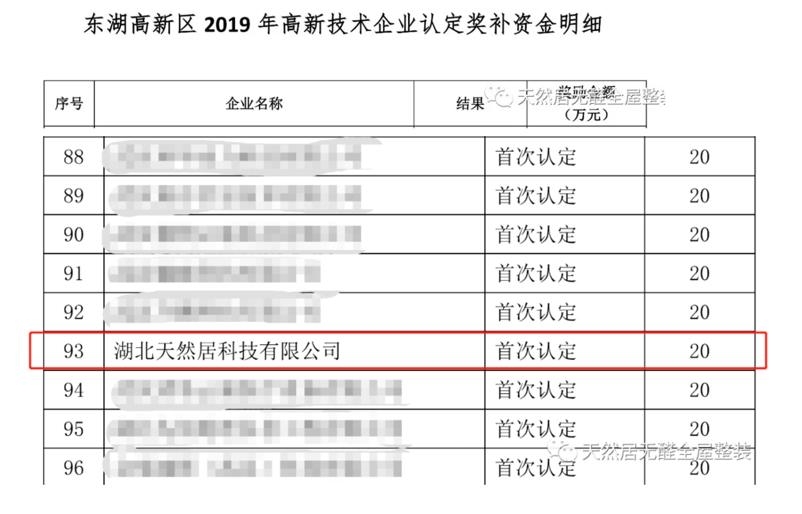 隨著經(jīng)濟的發(fā)展,高新技術企業(yè)在國家發(fā)展中所占的地位也越來越重。2020年,針對高新技術企業(yè),武漢將加大高新技術企業(yè)認定獎勵力度,對高新技術企業(yè),市級財政給予每戶20萬元獎勵。天然居榮獲20萬獎勵。