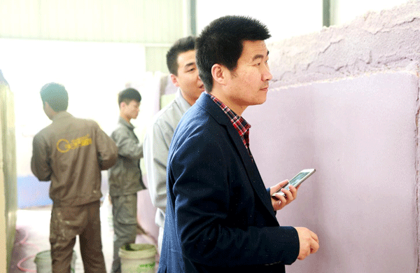 天然居施工總監(jiān)向劉總詳細(xì)介紹新品工藝